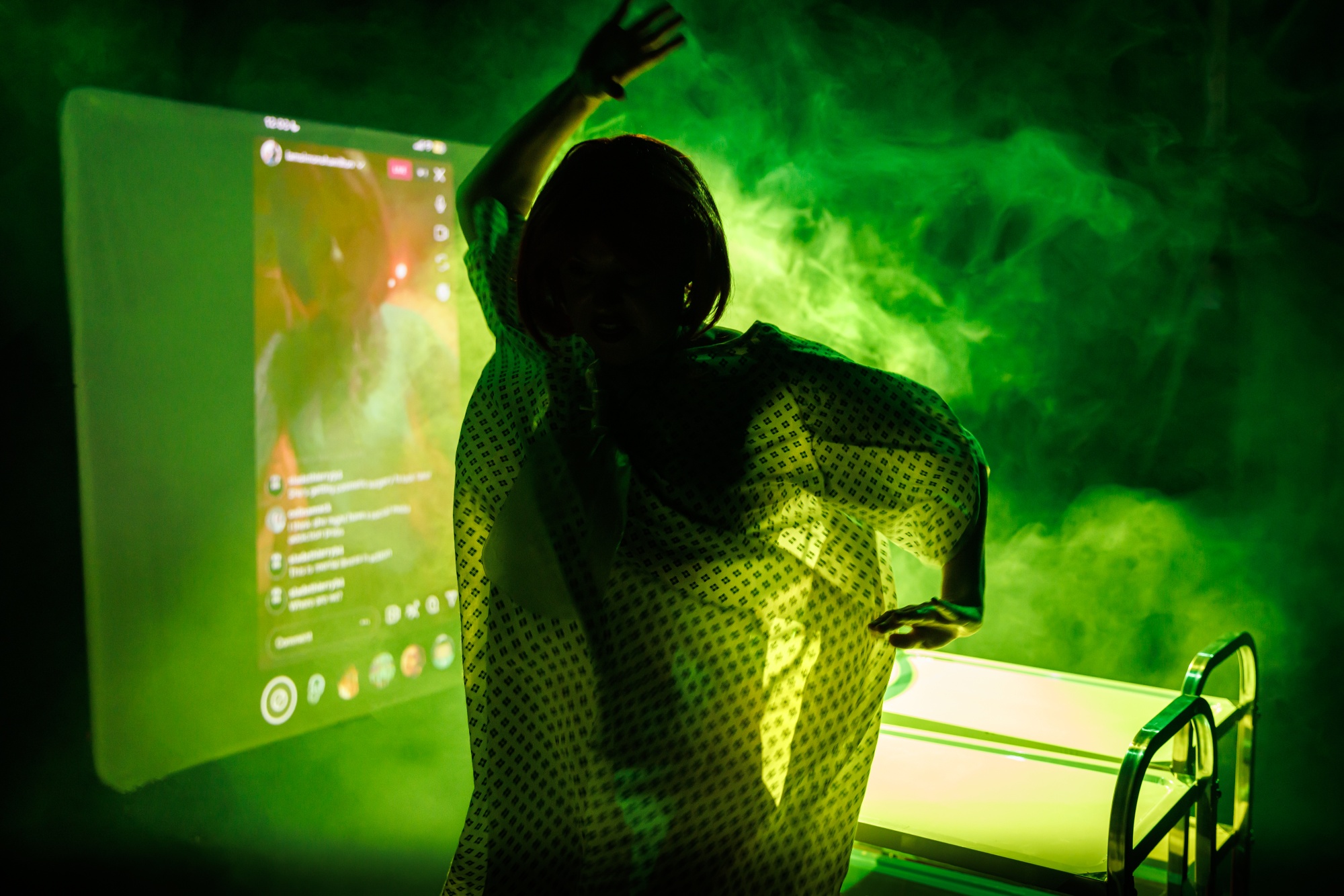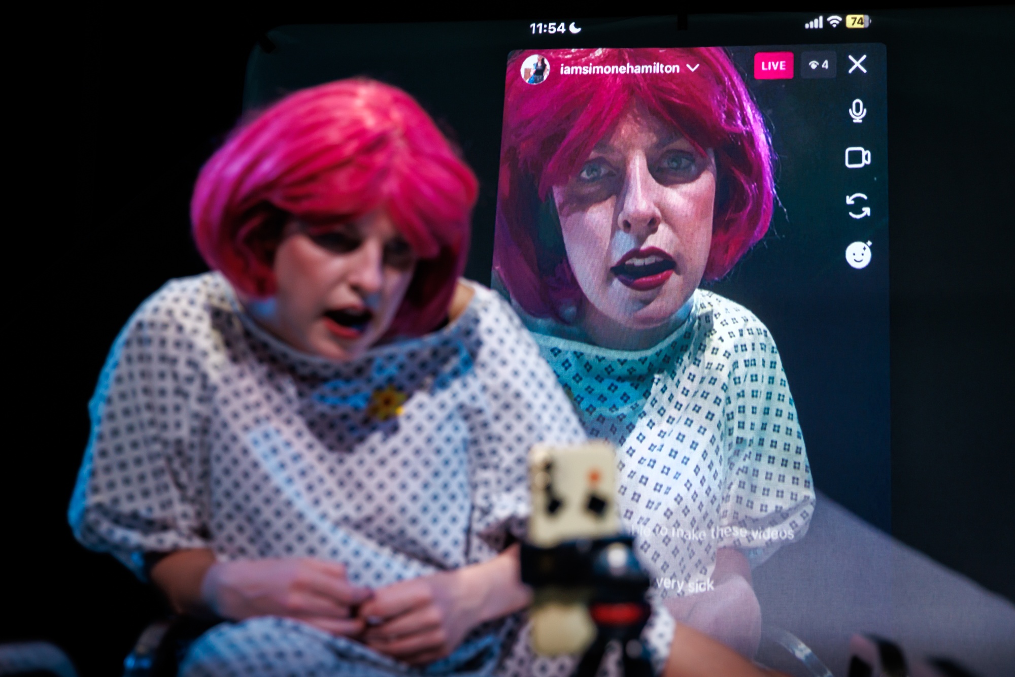 Each night, Simone goes live on Instagram from the stage, transforming the theatre into a real-time livestream. As her followers (that’s you) comment, question, and troll, her story of survival starts to crack. The feed glitches. The truth warps. What began as confession turns into confrontation.